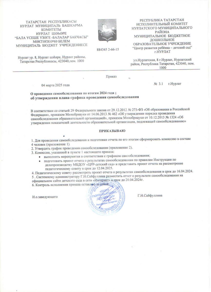 Приказ на проведение самообследования № 3.1 от 04.03.2025 г.