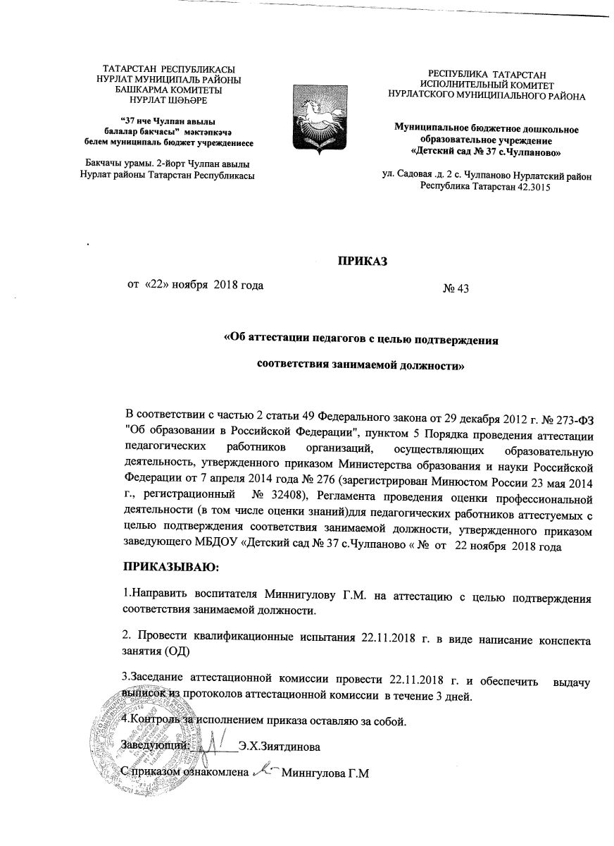 приказ об аттестации педагогов с целью подтверждения соответствия занимаемой должности