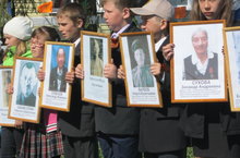 Ежегодно учащиеся нашей школы активно участвуют в параде Победы: несут георгиевскую ленту и плакаты с лозунгами, встречают с цветами ветеранов, читают стихи.