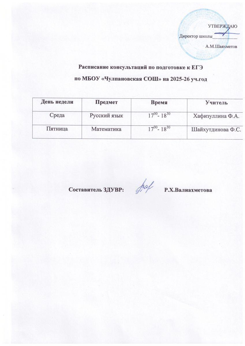 | Короткое название: | МБОУ " Чулпановская СОШ " |