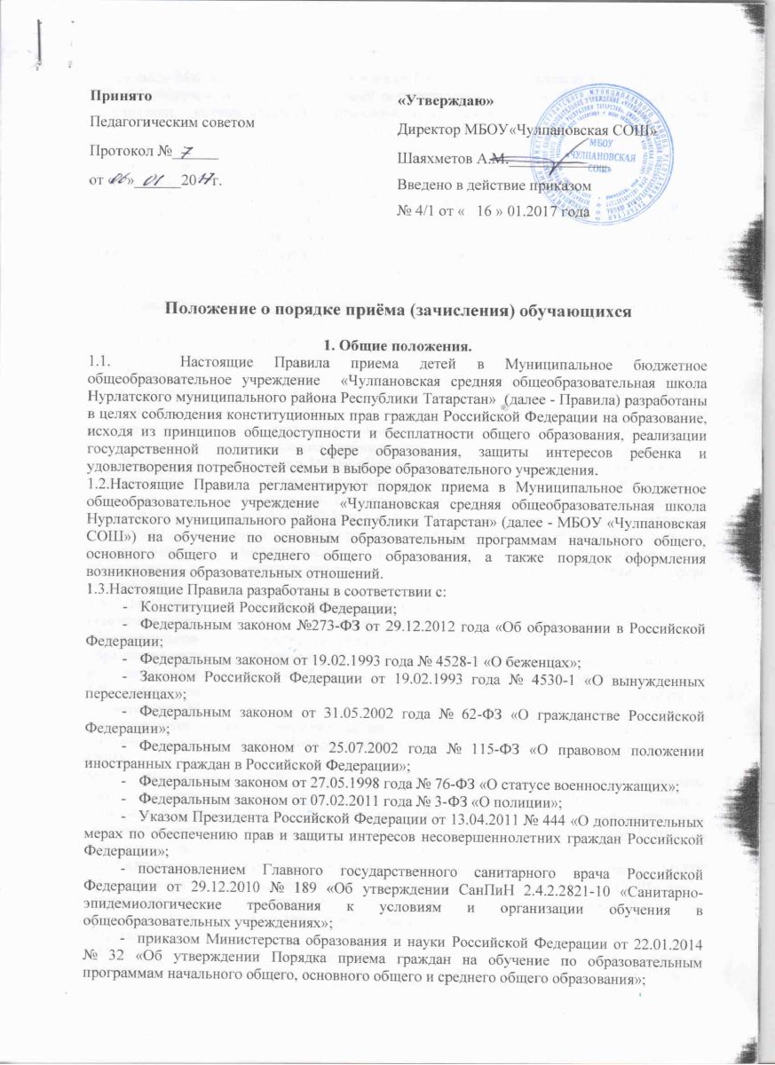 Постановление о закреплении территорий за МБОУ Чулпановская СОШ