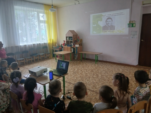 Опубликовано: 25.04.2025Сегодня воспитатель Хвалева Г.М провела познавательное мероприятие «И туган тел, и матур тел.... Памяти Г.Тукая». Дети погрузились в мир поэзии Тукая: посмотрели про жизнь и творчество поэта, мультфильмы по его произведениям на татарском языке "Водяная" и "Забавный ученик", исполнили знаменитую песню «Туган тел», инсценировали стихотворение "Забавный ученик", а также провели игру "Узнай по отрывкам сказки". Итогом было зарисовка знаменитых строк из песни Г.Тукая. Мероприятие помогло детям прикоснуться к богатому литературному наследию Татарстана и сохранить в сердцах память о великом поэте.