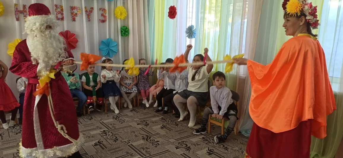 Сегодня в нашем саду весело отметили праздник “Навруз”. К ребятам в гости пришли Дед Мороз и Наврузбике. Они соревновались между собой: Дед Мороз не хотел уступать, да сил маловато осталось, ведь тепло на улице, весеннее солнце светит. Итак, победила весна - красна - Наврузбике. Дети тоже играли: соревновались в беге с яйцом в ложке, попробуй - не урони! Тянули аркан (канат), исполнили народную хороводную “Тюбетейка”, татарский танец, пели песни, читали стихи про весну и Навруз. Такие фольклорные праздники помогают сохранить дружбу между народами, воспитывают любовь и интерес к обрядовымпраздникам, к родному языку.