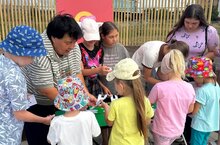 Сегодня в сквере Железнодорожников воспитатель Сафина Г.З.и учитель логопед Вафина Л.М. провели мастер класс "Яркие краски лета". Лето самая яркая и прекрасная пора. Природа радует разноцветной палитрой. Лето - это цветы, трава, бабочки. И на нашем мастер-классе дети создавали летнюю красоту. Вырезали бабочки, украшали их. В работе применяли такие виды деятельности как аппликация, рисование штампиками, ватными палочками. В конце мероприятия выполнили коллективную работу, украсили большую бабочку.