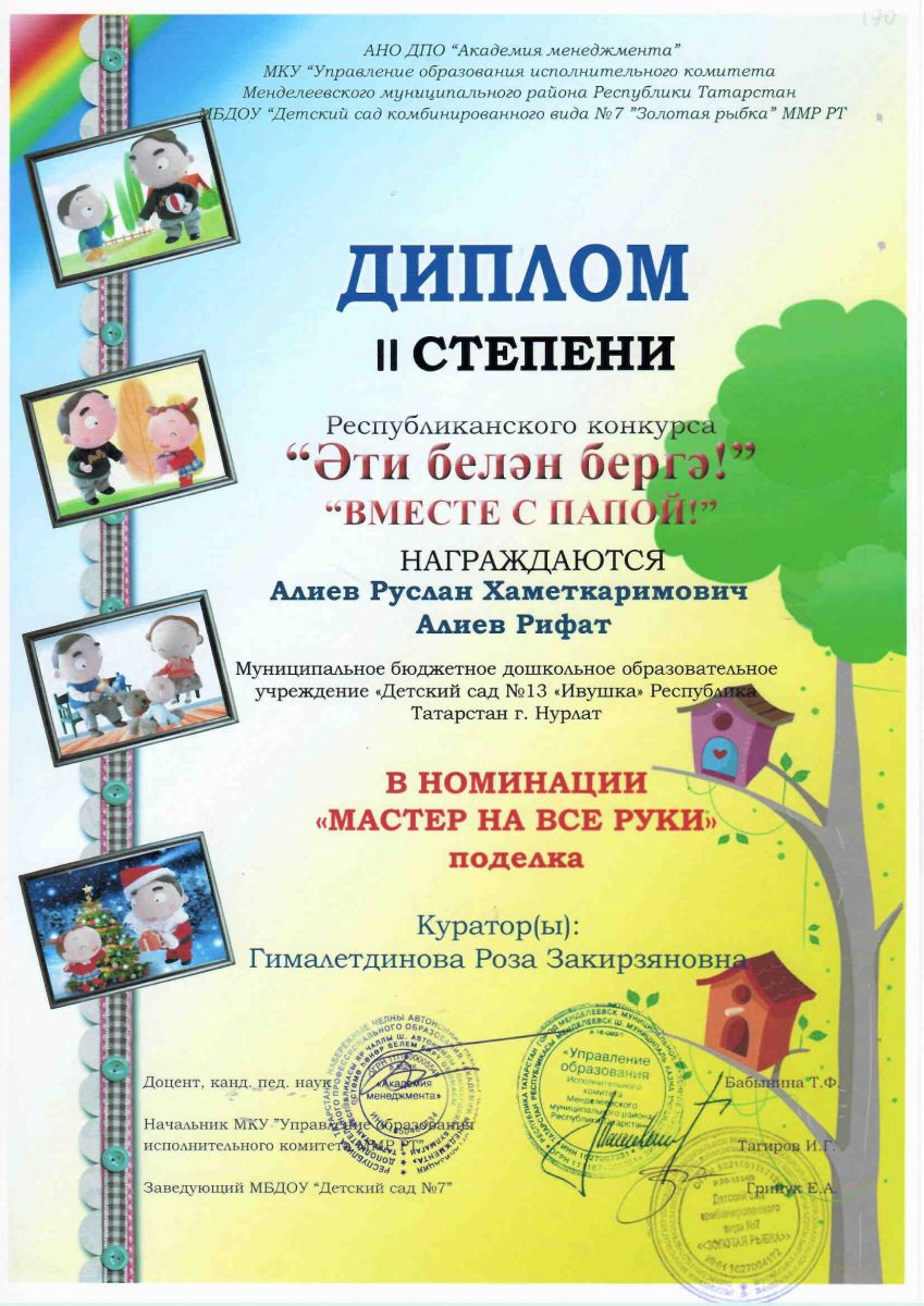 Диплом 2 степени Республиканского конкурса "Вместе с папой" Алиев Рифат