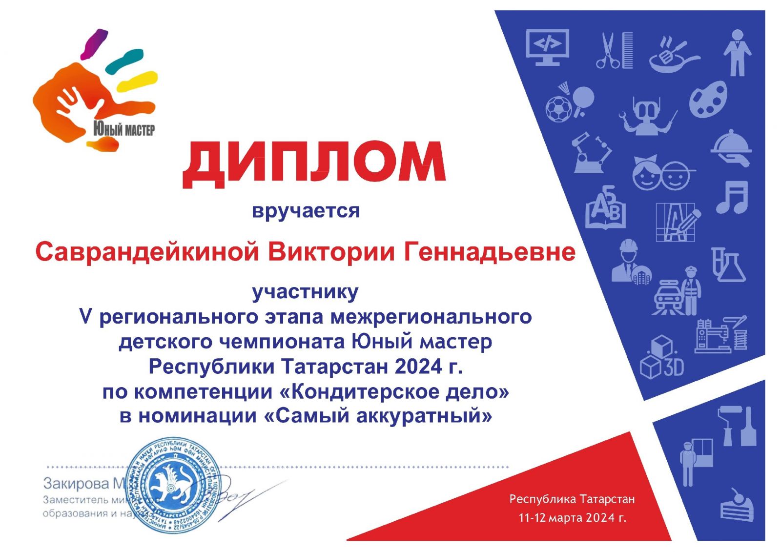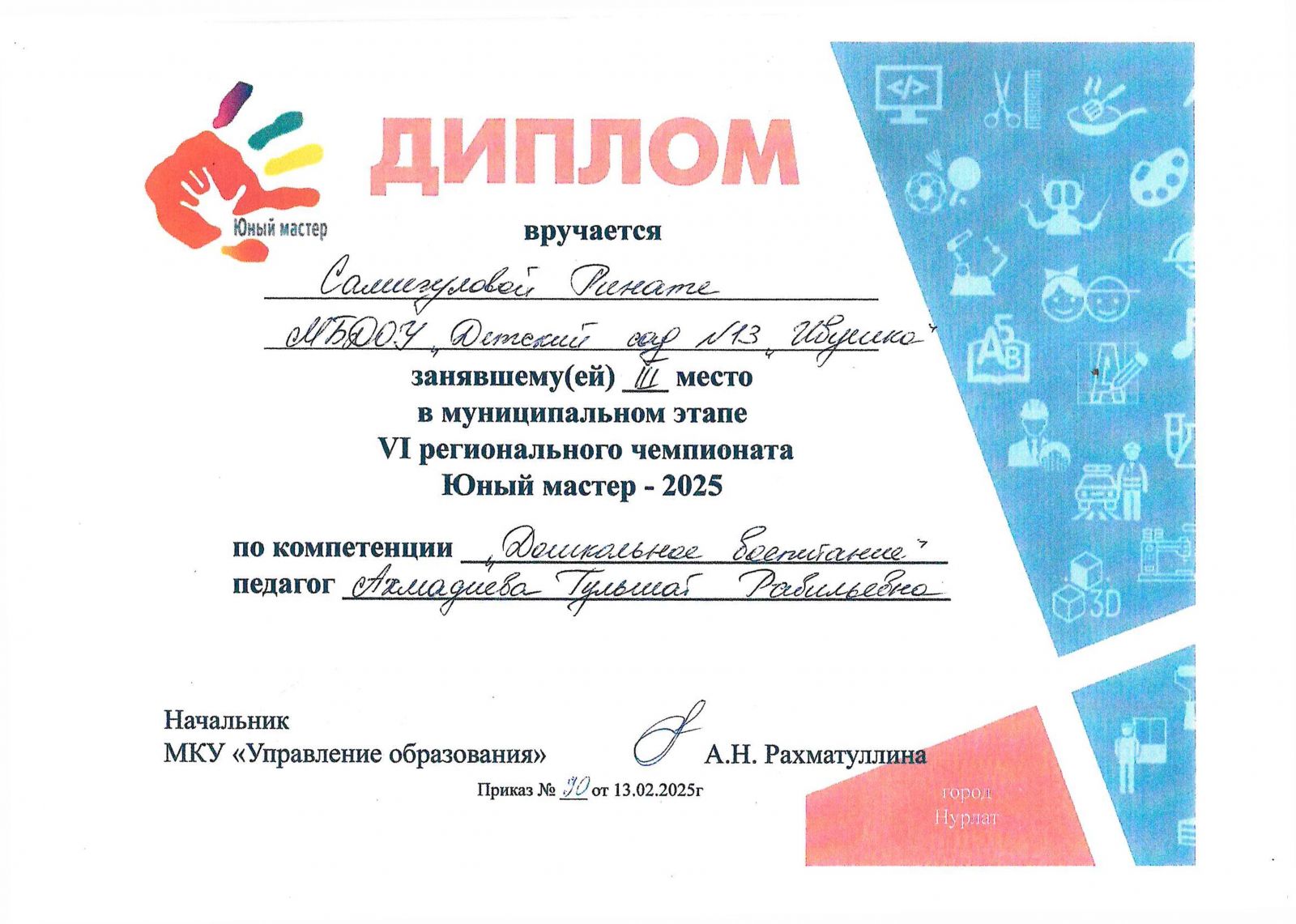 Диплом 2 степени в муниципальном этапе Регионального чемпионата "Юный мастер" Тимур Ш.