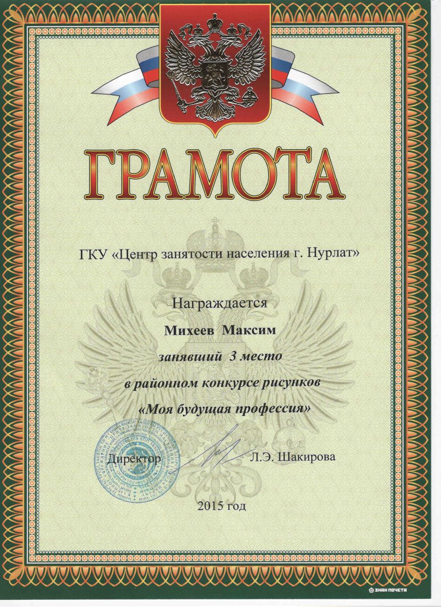Диплом в районном конкурсе "Моя будущая профессия" (Михеев Максим)