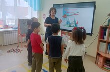 Тәрбияче Г.В. Абдуллина белән "Салават күпере", беренче кечкенәләр төркемендә балалар суның үзлекләре белән таныштылар -