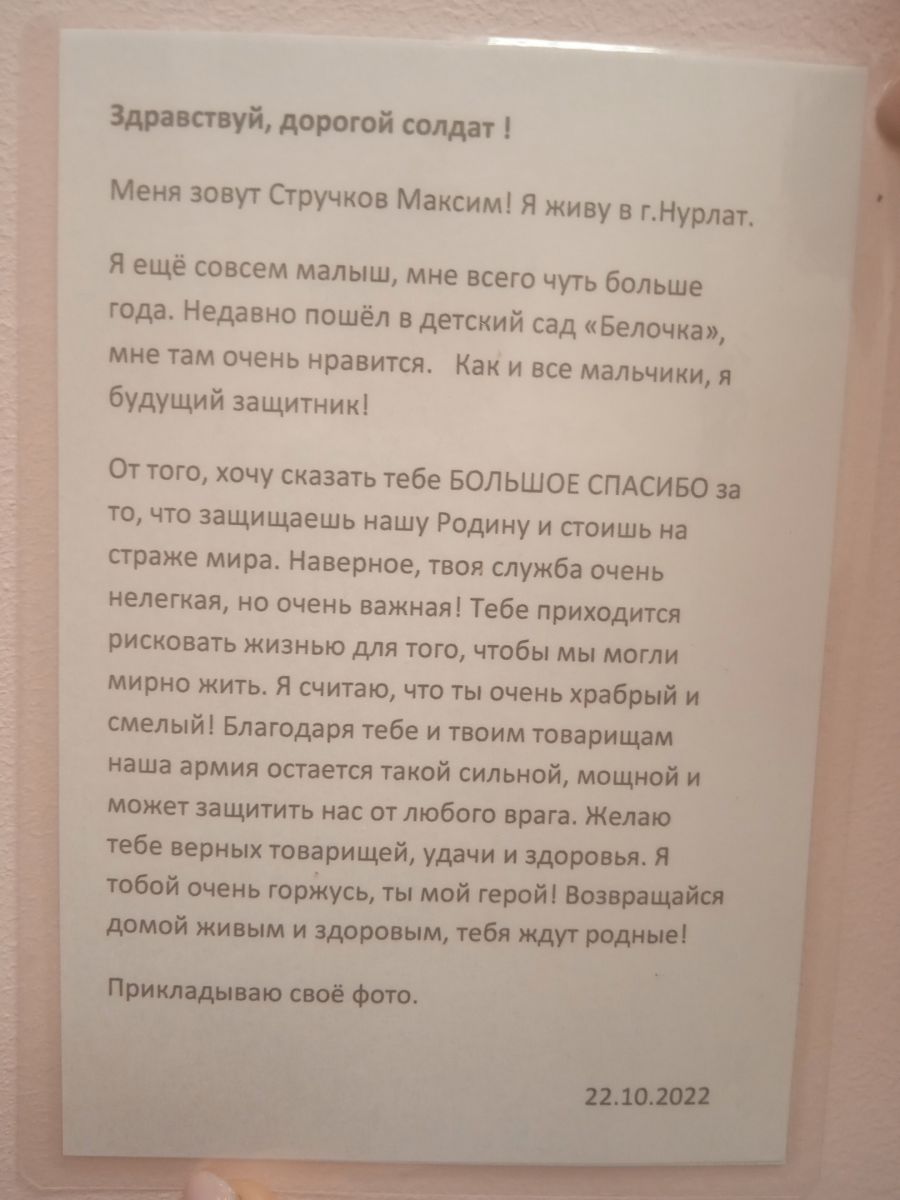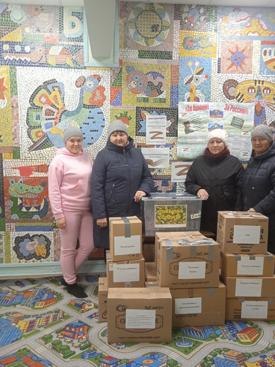 Балалар бакчасында "Солдатка посылка" дигән хәйрия акциясе тәмамланды, өлешчә мобилизациягә эләккән якташларыбыз өчен гуманитар ярдәм җыю. Акциягә балалар бакчасы хезмәткәрләре дә кушылды, ата-аналар һәм балалар да читтә калмады. Балалар рәсемнәр ясадылар һәм сугышчыларга хатлар яздылар. Сезнең катнашуыгыз, аңлавыгыз һәм ярдәмегез өчен һәркемгә рәхмәт. Бүген гуманитар ярдәм белән тартмалар Халыклар дуслыгы йортына, "Сугышчан туганлык"ка киттеләр. Ә иртәгә безнең тартмалар безнең тынычлыгыбызны һәм тынычлыгыбызны яклаучы егетләр янына китәчәк.
