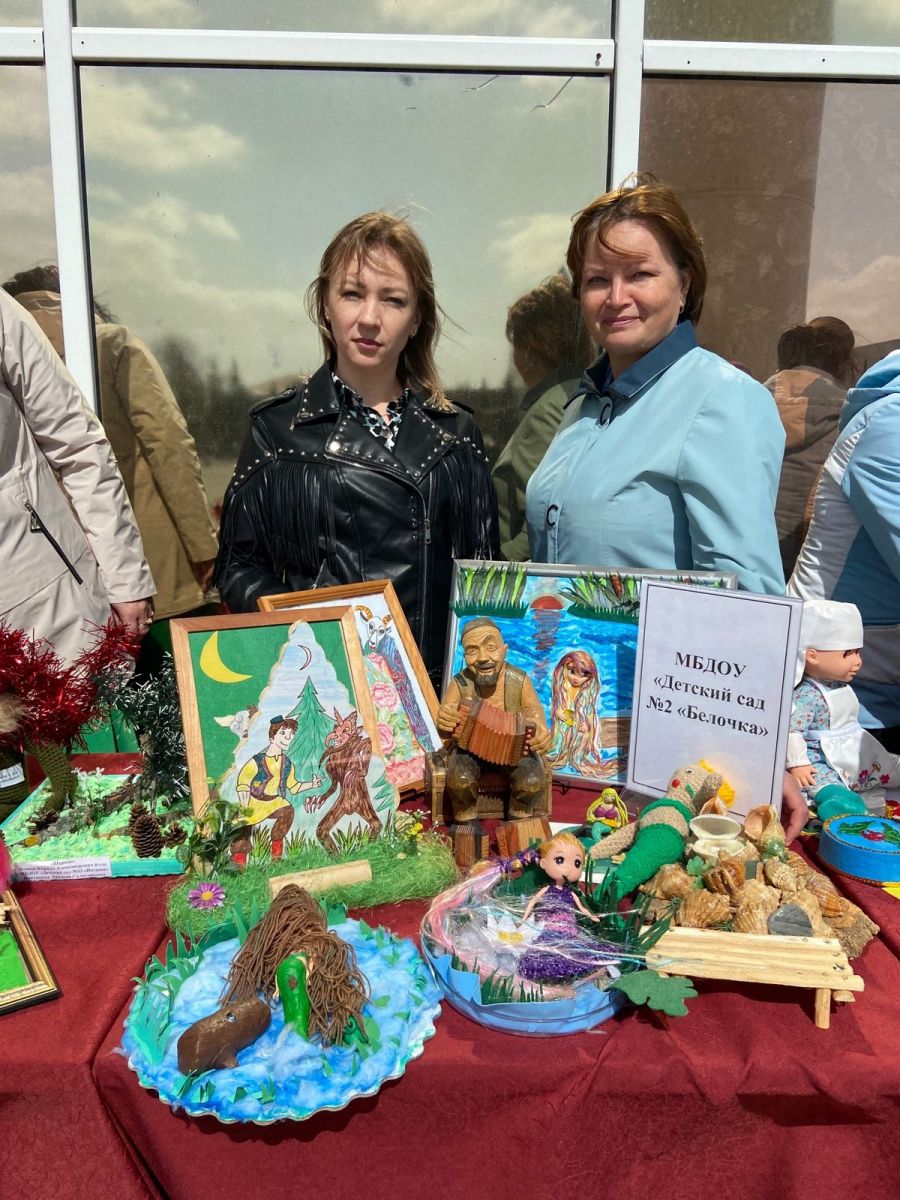 Опубликовано: 26.04.2023На центральной площади г.Нурлат, в сквере "Театральный", состоялось мероприятие, посвящённое Году национальных культур и традиций и дню рождения Г. Тукая. Наши сотрудники детского сада приняли участие в выставке поделок по произведениям Г. Тукая. Фото