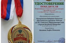 Наш детский сад победил во Всероссийском открытом смотре-конкурсе «Детский сад года» и награжден Удостоверением Победителя и медалью./ Безнең балалар бакчасы « Балалар бакчасы елы» Бөтенроссия ачык смотр-конкурсында җиңеп, җиңүче таныклыгы һәм медаль белән бүләкләнде.