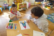 Дети с большим интересом слушали рассказы о первом человеке, отправившемся покорять космическое пространство — Юрии Гагарине, о собаках Белке и Стрелке, которым удалось до человека побывать в космосе, узнали много интересного об учёных, стоявших у истоков развития космонавтики, о планетах Солнечной системы, о космических полётах. С большим удовольствием рисовали,собирали ракету из геометрических фигур, изготовили ее из пластилина.