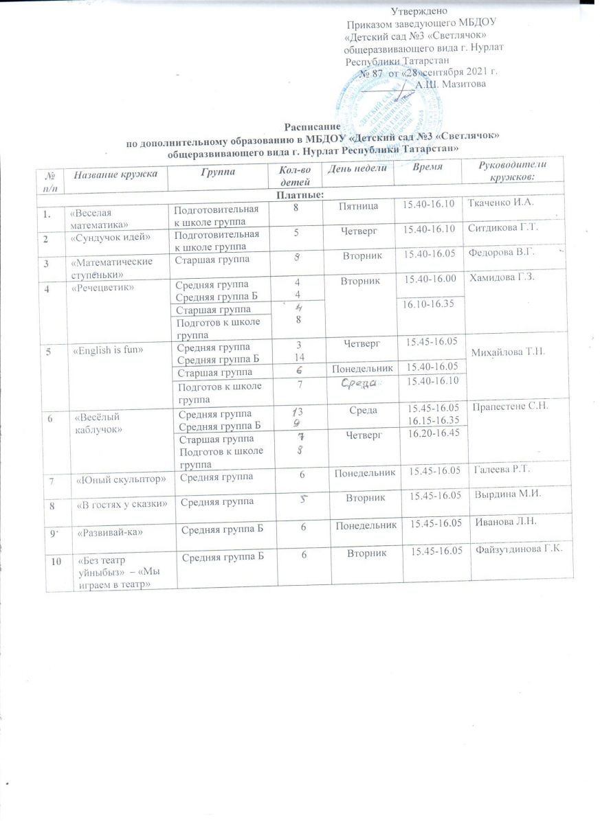 Учебный план дополнительного платного образования на 2021-2022 уч год.