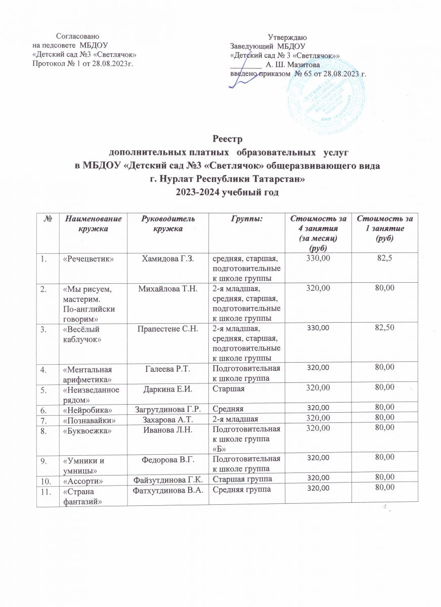 Реестр дополнительных платных услуг 2024-2025 учебный год