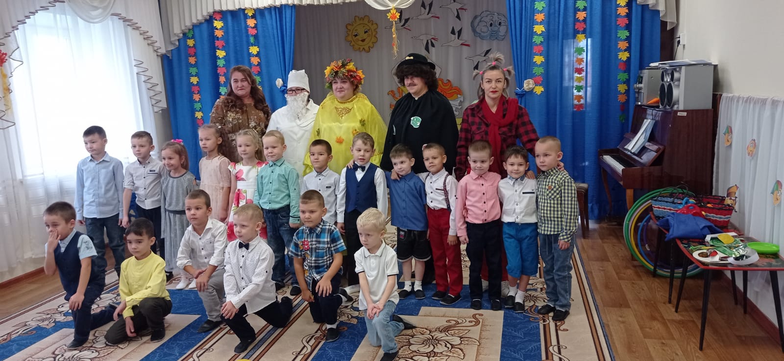 Опубликовано: 21.10.2022В нашем детском саду прошли осенние праздники. Красавица Осень заглянула в каждую группу и к большим и к маленьким, никого не оставила без внимания, а дети встречали её как дорогую гостью — с песнями, танцами, сказками, играми, шутками да прибаутками! / Безнең балалар бакчасында көзге бәйрәмнәр узды. Чибәркәй һәр төркемгә зур һәм кечкенәләргә күз сала, ә балалар аны җырлар, биюләр, әкиятләр, уеннар, шаяртулар һәм шаяртулар белән кадерле кунак итеп каршы ала!