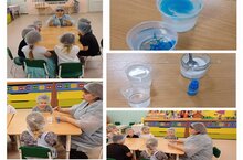 Зурлар төркемендә "Төсләрне тарату" дигән тәҗрибә уздырдылар. Балалар тоз кушканда суның тыгызлыгы арта баруын, бу сыеклык күләмендә төс таралу процессына йогынты ясавын белделәр, шуңа күрә ике стакандагы нәтиҗәләр дә аерыла.