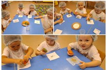Ребята второй младшей группы обнаружили, что фрукты содержат цветной сок и попробовали этим соком окрасить бумагу. В результате салфетки окрасились в тот же цвет, что и цвет сока.