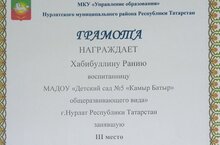 Муниципальное автономное дошкольное образовательное учреждение «Детский сад №5 «Камыр Батыр» общеразвивающего вида" г. Нурлат РТ\ Татарстан Республикасы Нурлат шәһәре “Балаларны һәрьяклап үстерү төрендәге 5 нче номерлы “Камыр Батыр” балалар бакчасы” муниципаль автоном мәктәпкәчә белем учреждениесе