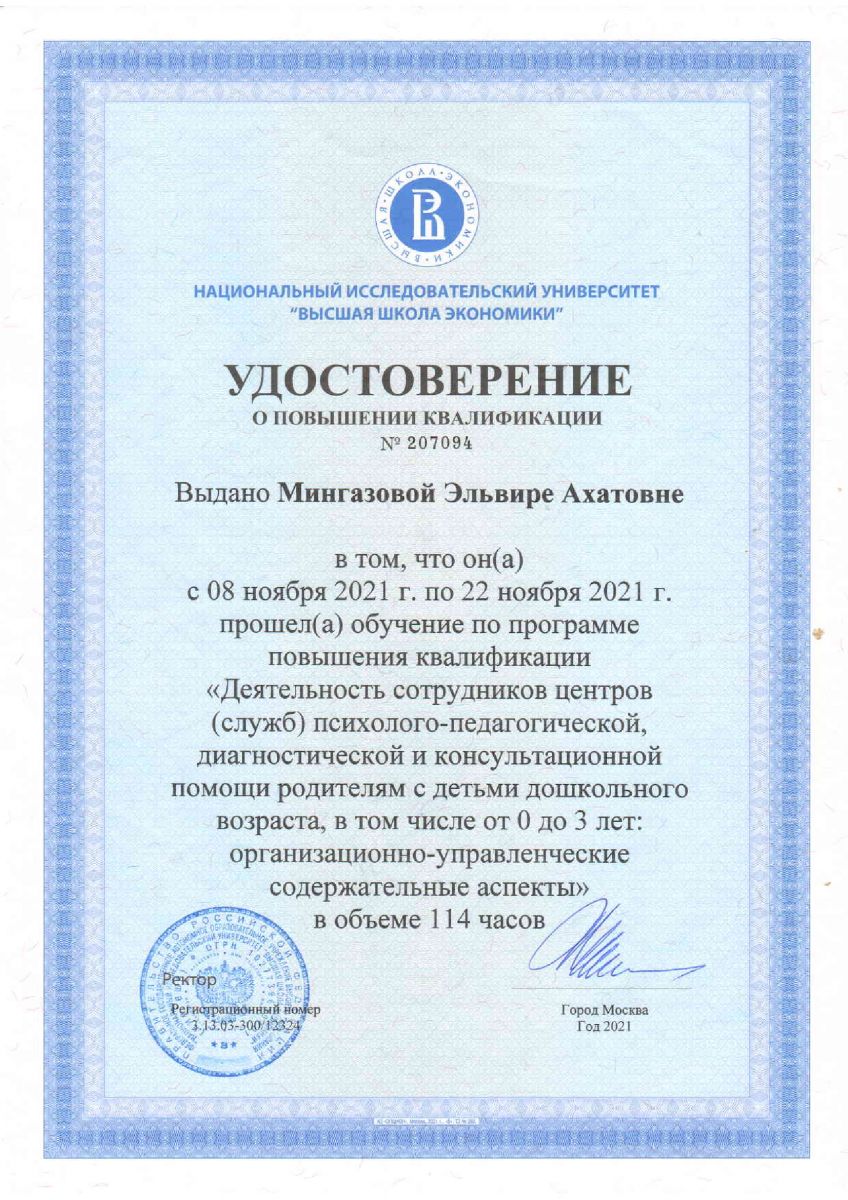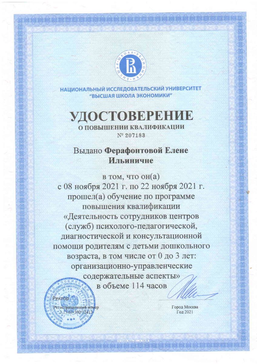 Обучение по программе повышения квалификации "Деятельность сотрудников центров (служб) психолого-педагогической, диагностической и консультационной помощи родителям с детьми дошкольного возраста, в том числе от 0 до 3 лет: организационно-управленческие содержательные аспекты" в объеме 114 часов (г.Москва)