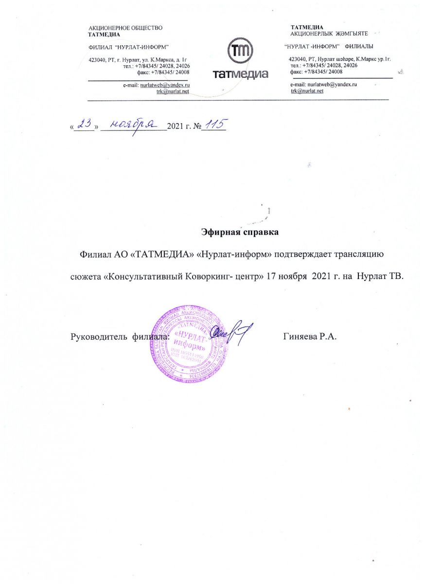 2.Трансляция сюжета "150 семей обратились в Консультационный Коворкинг-Центр" 17.11.2021 г.