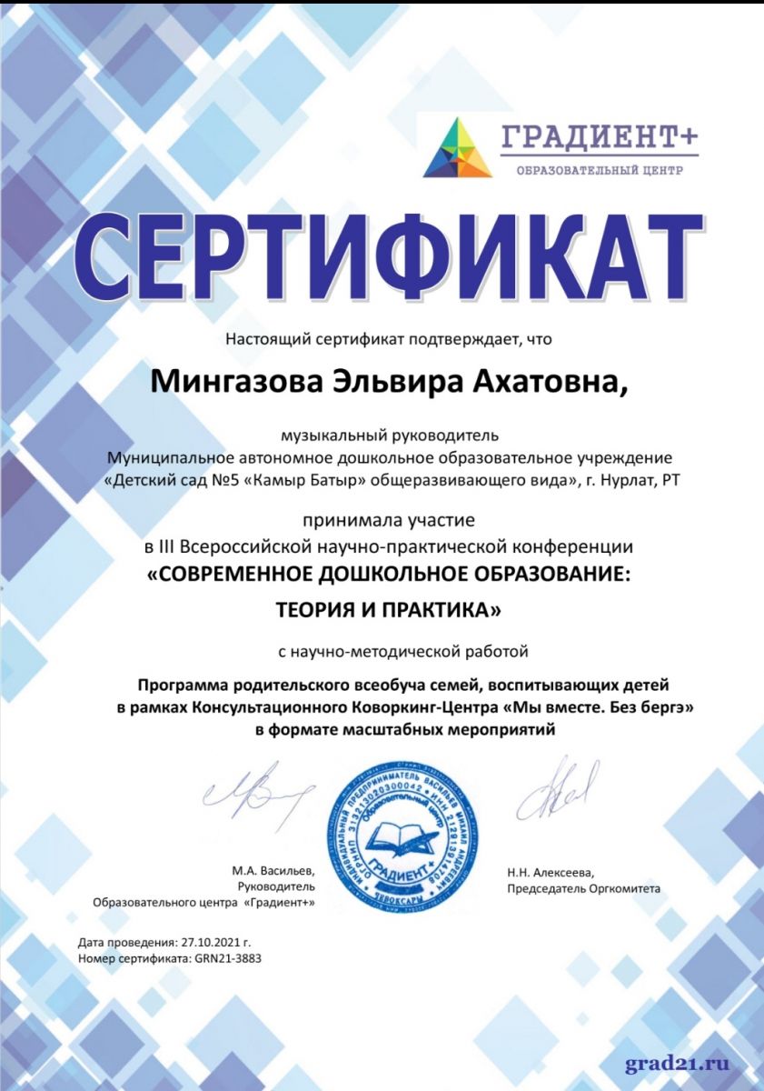 Консультант по художественно-эстетическому развитию Мингазова Э.А.