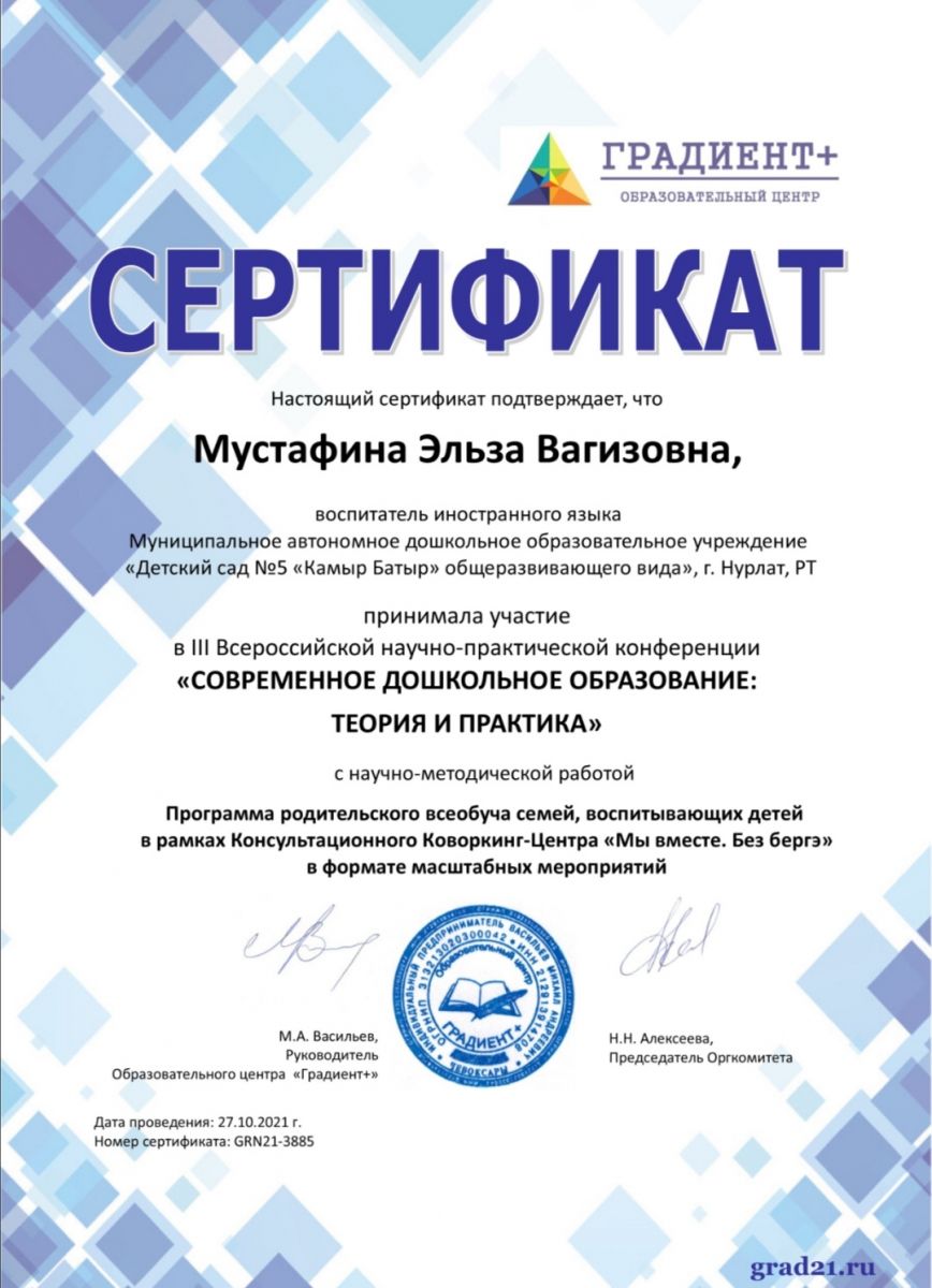 Консультант по познавательно-речевому развитию на иностраннном языке Мустафина Э.В.