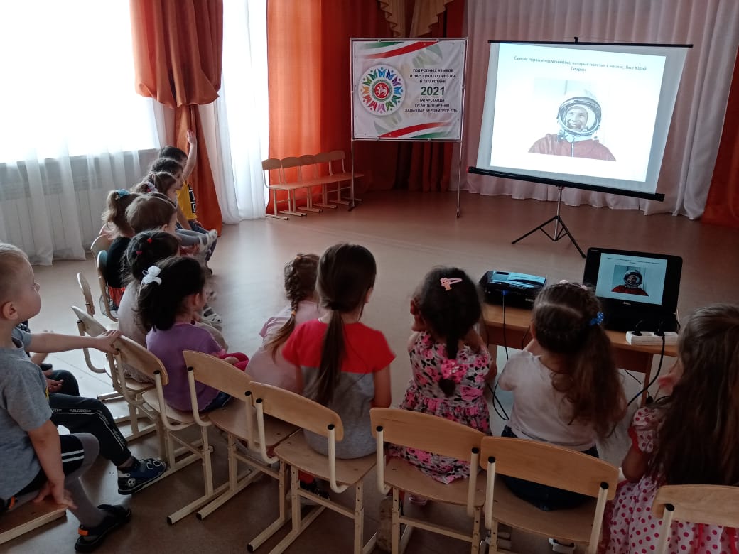 2021 ел беренче кеше Юрий Гагаринның галәмгә очуына 60 ел тулу уңаеннан билгеләп үтелә. Ул беренче булып җир тирәсендәге орбитага эләгә. безнең балалар бакчасында бик күп чаралар үткәрелде: дәресләр, әңгәмәләр, презентацияләр карау, иҗади проектлар, рәсем һәм кул эшләнмәләре конкурслары, күңел ачу, флешмоблар, Россия очучы – космонавтларының фотосурәтләрен карау, конструктор белән уеннар, картиналар буяу, хәрәкәтчән уеннар һ. б.