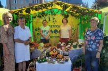 Детский сад 7 "Колосок" принял участие в ежегодной августовской педагогической конференции. Сотрудники детского сада организовали тематическую палатку,где продавали продукты сельского хозяйства и консервацию. Так же нам очень помогли в оформлении и родители наших воспитанников,так например мама Киямова Ильдана подготовила интересную подделку из овощей "Курица с цыпленком".