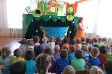 На этот раз театр кукол "Алина" порадовал нас музыкальной сказкой "Веселый молочник и волшебное молоко".Дети с удовольствием пели песни и апплодировали артистам.