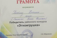 Победитель районного конкурса "Этноигрушка" Тютина Камилла, воспитатель Галимова Венера Фаиковна.