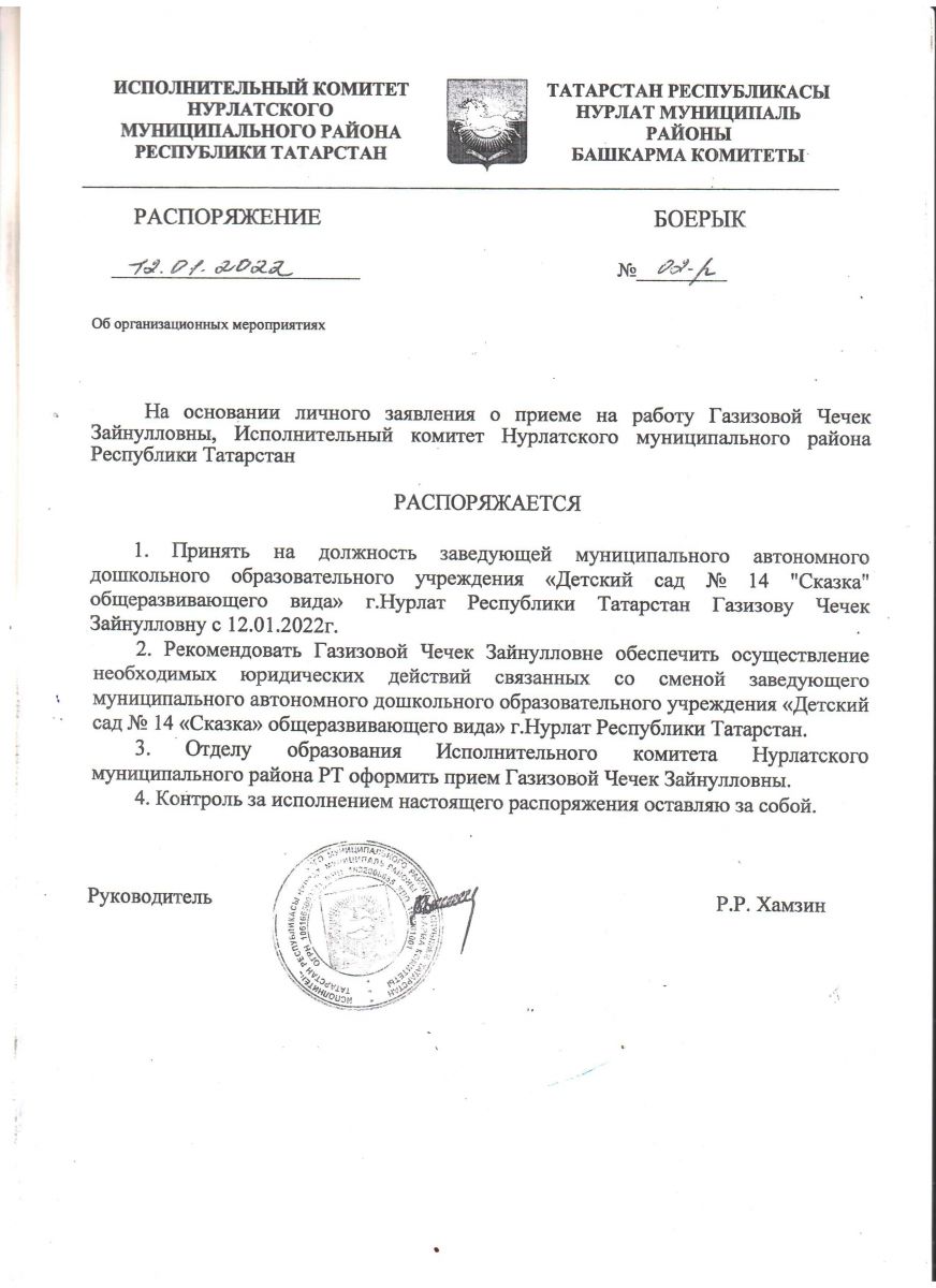 Приказ о назначении руководителя / Җитәкчене билгеләү турында боерык