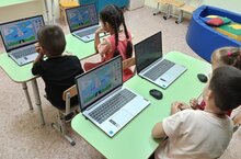 Безнең «Кояшкай» һәм «Фиксики» төркемнәрендәге кечкенә лингвистларыбыз лингафон кабинетында инглиз телен үзләштерә башладылар! Алинә Рәшид кызы белән бергә алар яңа сүзләр һәм авазлар дөньясына бик теләп керәләр.