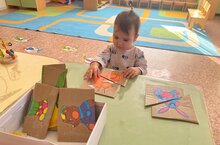 Анастасия Владимировна подготовила для своей группы «Крошки» пазлы из бросового материала, чтобы дети могли весело и с пользой собирать их вместе.