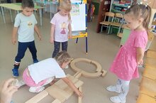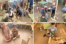 На утреннем круге мальчики из группы «Гномики» предложили построить современный «Теремок»! Иванов Данил предложил украсить его цветами, а Кротов Дмитрий — построить забор! Девочки дополнили игру, устроив театральное представление по мотивам сказки «Теремок»!