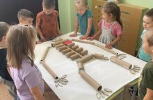 "Нурлар" төркемендә эш кайный! "Кеше" исемле тема безне ташландык материалдан скелет ясарга рухландырды! Скелет төзелеше турында фикер алыштык, сөякләрнең исемнәрен белдек. Умыртка сөяге өчен туалет кәгазеннән рулоннар алганнар, аяк-кул сөяге өчен - сөлгеләрдән.