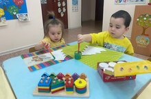 Изучали геометрические фигуры и цвета, дети вместе с Анастасией Владимировной знакомились с кругом, квадратом и треугольником, сортировали предметы по цвету и складывали картинки из фигур.
