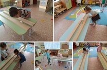 Менә бу креатив! Безнең балалар "Бабашка"дан йортлар гына төзеп калмыйлар, ә уйлап табалар! Бүген алар сулышны үстерү өчен чын тренажер ясадылар! Ике рәт плашка тезеп, алар арасына туп җибәрделәр һәм ярыш оештырдылар: кем аны дистанция буенча тизрәк өреп чыгара!