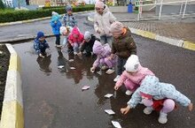 Сегодня ребята группы "Искорки" устроили настоящую флотилию! Вместе с Лолой Абдурахимовной они мастерили бумажные кораблики и отправили их в плавание по самой настоящей луже!