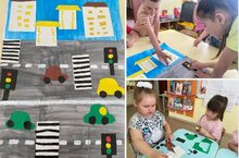Наши ребята группы "Фиксики" с Анастасией Владимировной строят настоящий город из цветной бумаги и ватмана, где все соблюдают правила дорожного движения!