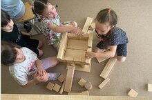 Наши юные строители группы "Гномики" возводят сказочный теремок по мотивам любимой сказки!