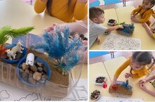 14нче март көнне "Гномиклар" төркеме балалары экологик темага тылсымлы сенсор тартма ясадылар! Балалар белән бергә алар тартмага төрле табигый материаллар: ташлар, күркәләр, ботаклар, мүк, кабырчыклар җыйдылар. Бераз ком, су һәм кечкенә хайван сыннары өстәделәр. Хәзер балалар бу "Эко-дөньяны" тикшерә, кагыла, йоклата, төзи һәм әйләнә-тирә мохит турында күбрәк белә ала. Мондый сенсор тартма вак моториканы, хыялны, тактиль тойгыларны үстерә һәм табигатькә сакчыл мөнәсәбәт формалаштыра!