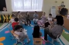 Дети младшей группы "Искорки", совместно с Лолой Абдурахимовной, играли на крышках и отрабатывали ритм под музыку.