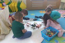 Вера Валерьевна продолжает участвовать с детьми в челлендже №2. В первой половине дня у детей на столе лежали предметы, из которых нужно было придумать сюжетно-ролевую игру, но помогать и вмешиваться нельзя. Получилось очень даже неплохо. Ребята построили дом, стол накрыли и придумали себе роль барабанщиков. А некоторые дети даже занялись фермерством.