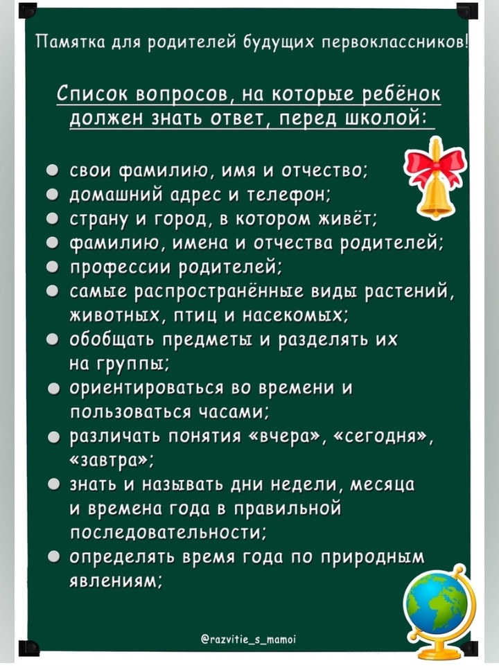 Памятка для родителей будущих первоклассников/Булачак беренче сыйныф укучыларының әти-әниләре өчен истәлек.