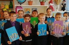 Учащиеся 4 класса выполнили творческую работу"Осенняя береза".