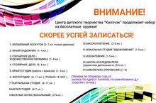 Центр детского творчетва "Килэчэк" продолжает набор на бесплатные кружки. Успейте записаться.