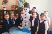 Готовясь к Новому Году, учащиеся смастерили снеговика для фотозоны.