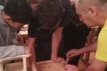Занятия кружка "Юный столяр" проходят очень интересно. Ребята изготавливают кормушки для птиц. Руководитель Яллин В. Л.