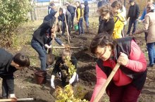 В школе прошёл субботник по высадки саженцев смородины и малины
