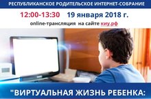 19 января 2018 г. в 12.00 - 13.30 пройдёт Республиканское родительское интернет-собрание "Виртуальная жизнь ребёнка: Интернет - друг или враг?" (О роли родителей в обеспечении информационной безопасности детей) на сайте киу.рф .